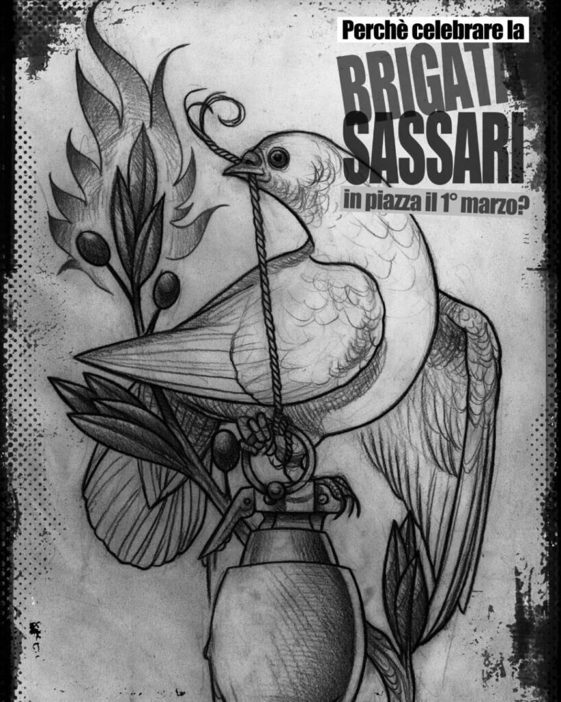 Per fermare questi macellai, dobbiamo metterci tuttə insieme e dobbiamo fargli capire, che lə sardə hanno già visto cosa vuol dire morire per i padroni italiani: per questo ci troveranno in piazza, ogni volta che proveranno a mandare a morire noi e lə nostrə figliə.